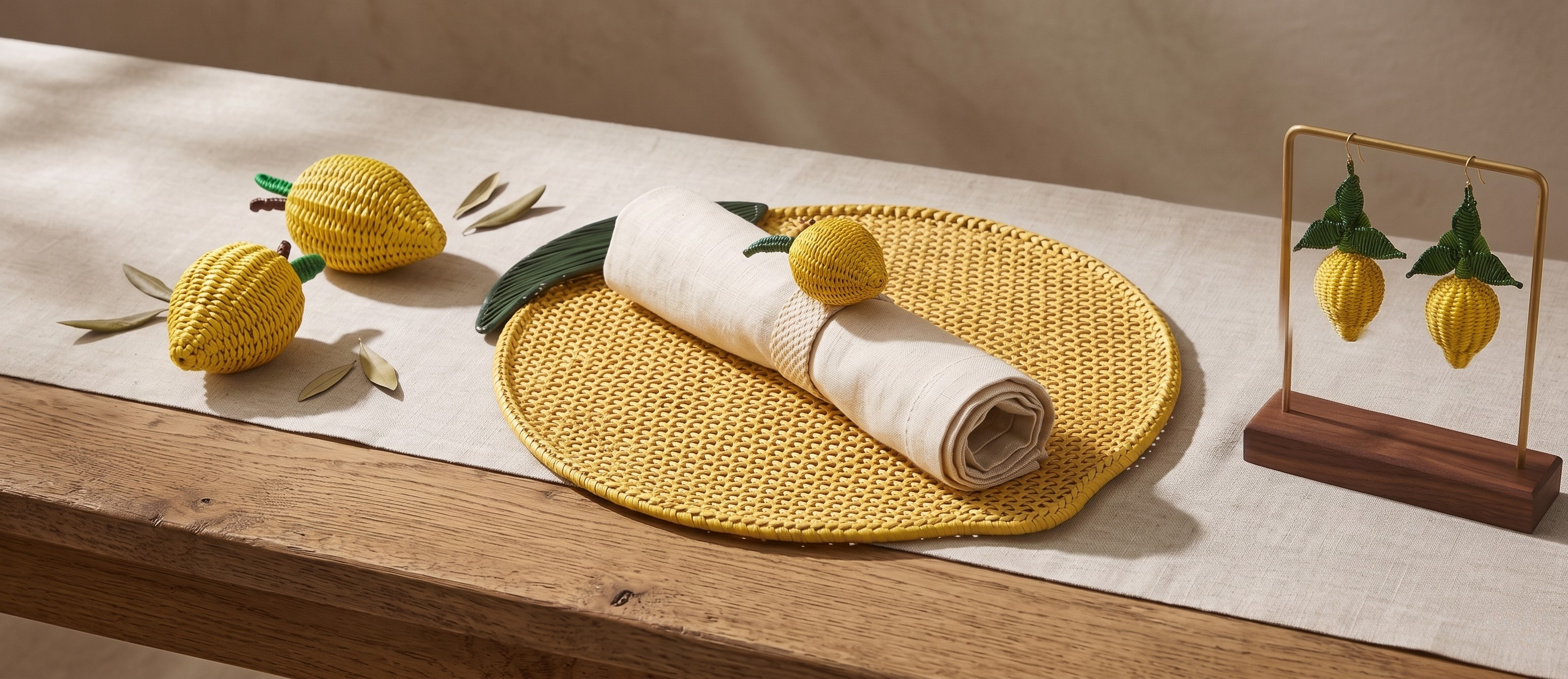 Our table decor is handwoven in Colombia using Iraca palm and timeless techniques passed down through generations. From placemats to napkin rings, each piece is made to bring beauty, meaning, and a touch of elegance to your everyday table.