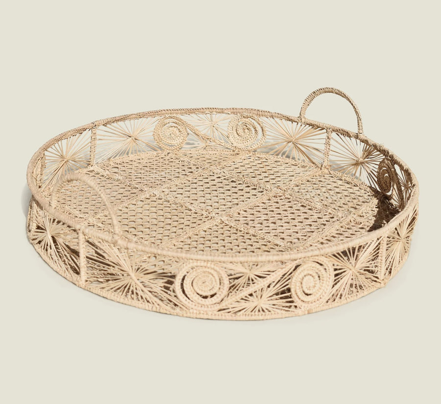 Elevate your home decor with the unique beauty of our Caracoli Woven Round Handwoven Decorative Iraca Tray. Handcrafted with unwavering attention to detail, this woven round tray marries functionality with artistry, making it a versatile and enchanting addition to your living space.